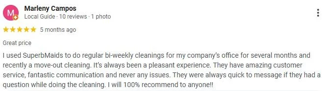 Professional spaces deserve the same level of care as homes. Superb Maids Houston delivers dependable bi weekly office cleanings and seamless move out services with clear communication and responsive support throughout the process. Questions are addressed in real time, expectations are met, and every visit is handled with professionalism. Creating a consistently positive experience is just as important as delivering a spotless result.